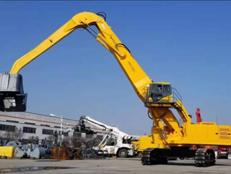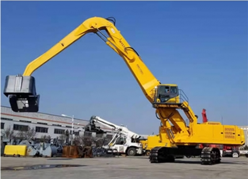 • The equipment adopts a high-power "national three" standard engine, a 380V Siemens motor, and the world's first "dual power" grabber that uses Schneider control system to drive and control two sets of Rexroth hydraulic power mechanisms and pilot hydraulic control. The machine is designed with a wide structural beam and a reinforced two-section main boom that can replace positive and negative difference. The maximum lifting weight is 25 tons and the maximum operating radius is 18 meters. Within the operation radius of 5 to 12M, it can be equipped with 5.0m3 clamshell grab or 2.5m3 plum shaped scrap grab.