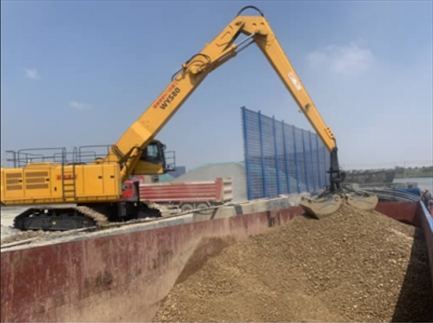 • This heavy-duty grab is a patented product of "double power" invention with internal combustion engine and 380V electric interchange operation, which is optimized, designed and refitted on the basis of the structure of the 70 ton mining shovel imported from Liebherr in China. This "heavy-duty, high mobility" energy-saving and environmentally friendly bulk cargo handling and grab operation equipment.