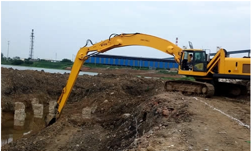Full hydraulic super long arm excavator, driving in the river dredging and ditch excavation site