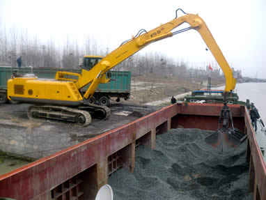 雙動(dòng)力全液壓輪式、履帶式抓料機(jī)(通過(guò)配置不同抓具,可實(shí)現(xiàn)多種作業(yè)功能,一機(jī)多用)可對(duì)廢鋼、礦石、鐵粉、煤碳等小范圍、大批量的泡、松、散、扯、亂類物料進(jìn)行快速裝卸、堆垛、喂料作業(yè),憑借安全環(huán)保、節(jié)能省錢(qián)的顯著優(yōu)勢(shì),與現(xiàn)代眾多港口集團(tuán)“低碳高效”的港口方針相得益彰,迅速占領(lǐng)各大港口碼頭市場(chǎng),并擔(dān)當(dāng)作業(yè)主力。